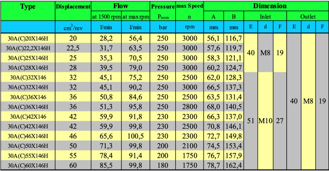 Гідравлічний шестеренний насос Hydro-pack 30С42X146HF групи 30, з об'ємом 42 см3/об, має праве обертання (за годинниковою стрілкою). Використовується для встановлення на трактор.