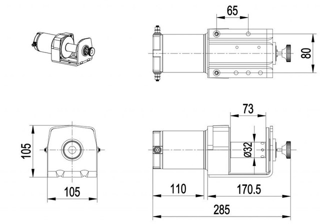 Лебідка працює від напруги 12 вольт, володіє невеликою вагою, завдяки якому легко і швидко кріпиться на транспортні засоби.
