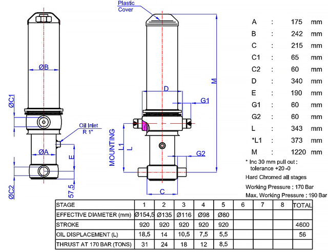 | Діаметр штока | 175 мм |