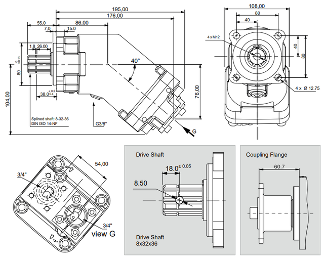 Нерегульований аксіально-поршневий насос з похилим блоком HYDMax NPX 18S. Підходить для як лівого, так і правого обертання. Робочий об'єм складає 18 куб. см. Розрахований на роботу при номінальному тиску 350 бар.