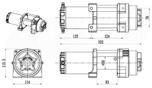 Лебідка має герметичну конструкцію, яка запобігає потраплянню вологи, бруду всередину, працює від 12 V напруги, не вимагає значного сервісного обслуговування.