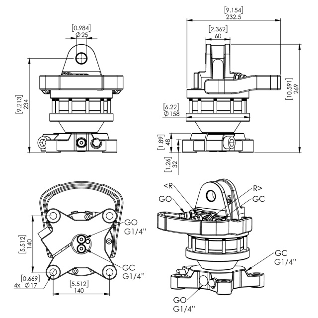 Легкий та ефективний гідравлічний ротатор Finn Rotor CR 300-W25F140 з фланцем 140x140 та необмеженим обертанням. Призначений для безперервної роботи машин з різним навісним обладнанням, яке дозволяє легко змінювати основні робочі пристрої. Це можуть бути пелюсткові та ковшові грейфери, захоплення для переміщення лісу, спеціалізовані транспортні засоби для брухту та грейфери для переміщення сипких матеріалів. Гідравлічний ротатор встановлюється на крани-маніпулятори та гідроманіпулятори, забезпечуючи ефективну роботу з різноманітним обладнанням. Виберіть серію CR F від Finn-Rotor, якщо Вам потрібна компактна конструкція та гнучкий інтерфейс.