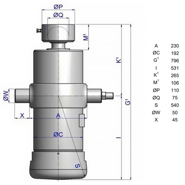 UMB 169-4-2180-K265-50-3/4"-HC від HYVA є високоякісним гідравлічним пристроєм. Забезпечений 4 штоками, цей гідроциліндр забезпечує надійну підтримку вантажів в діапазоні від 25 до 32 тонн. З номінальним тиском 220 бар і діаметром першого штока 169 мм, він гарантує ефективне підняття та опускання вантажів.Загальна довжина у розкритому стані становить 2180 мм, забезпечуючи достатній хід для різних завдань.Цей гідроциліндр HYVA – надійне рішення для інтенсивного використання, де потрібна висока вантажопідйомність. >