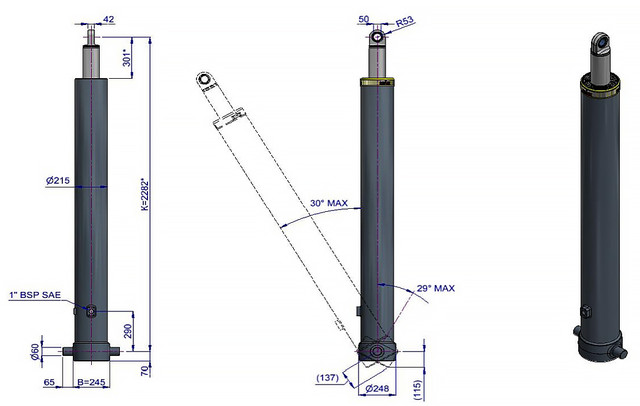 | Максимальне навантаження циліндра (початок перекидання) | 345 кН |