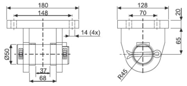 Кріплення HYVA з артикулом 01506787 призначене для встановлення передніх телескопічних гідроциліндрів типів FE, FEE та FSE. Ця модель використовується як верхнє кріплення і оснащена вушком діаметром 50 мм, що забезпечує міцне і надійне з'єднання циліндра з конструкцією самоскида або причепа.