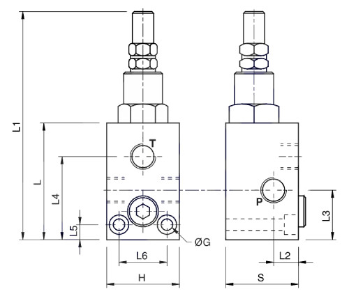 Монтаж: підключіть порт контуру з тиском до P, а порт бака до T. Порт P є реверсивним.