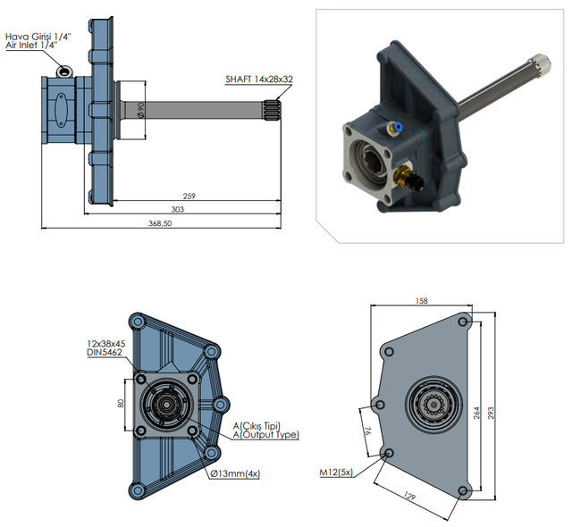 Стандарт приєднання: Вал B8x32x36 (8 шліців, Ø36 мм), монтажний фланець ISO (4 отвори, 80x80).